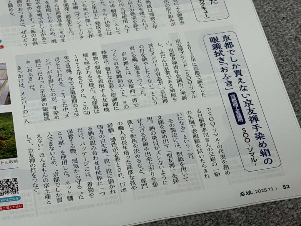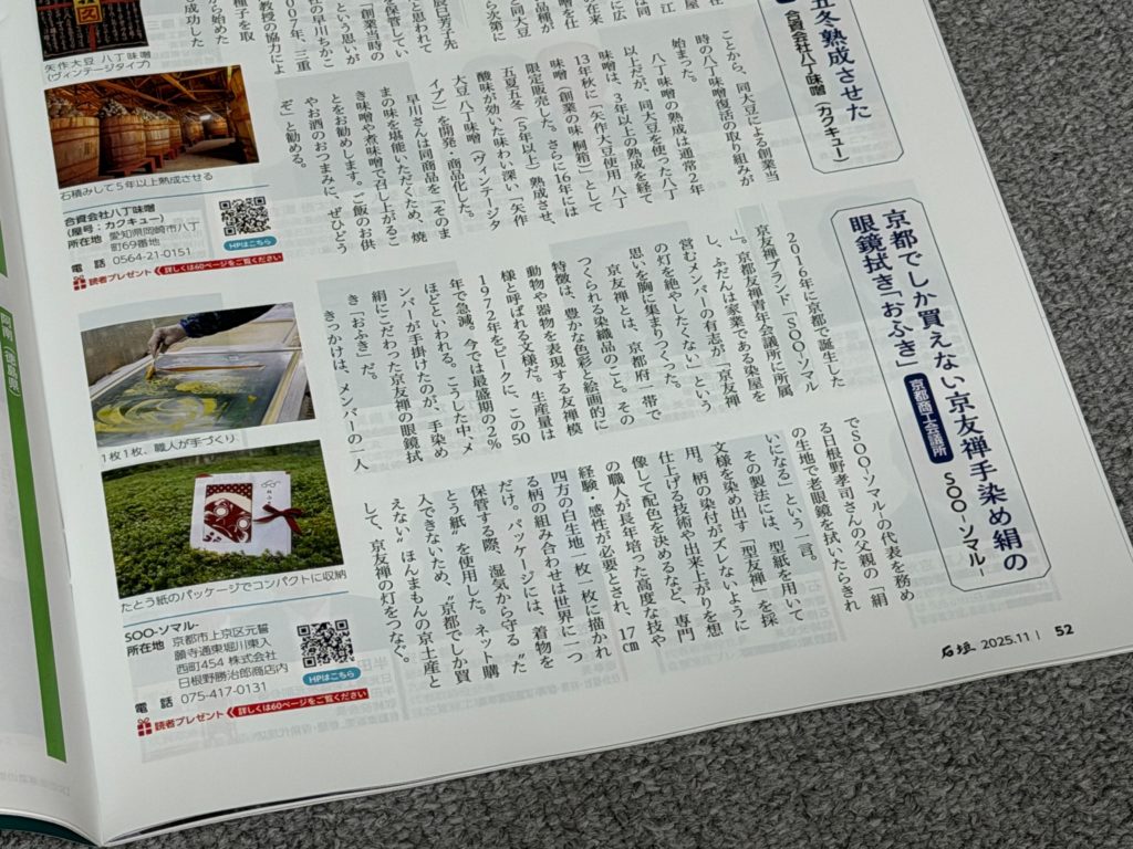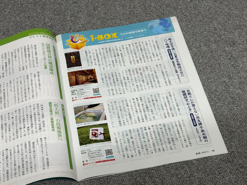 11月号の各地の商工会議所の会員企業の活動を紹介する i-BOX ページにSOOが掲載されました。SOOの活動や商品について紹介いただいております。